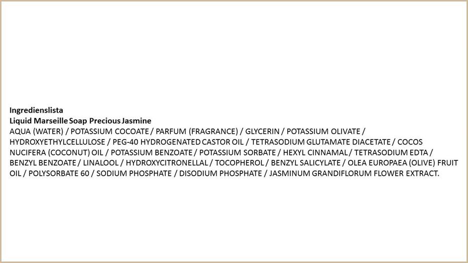 Detta är en flytande marseilletvål tillverkade enligt gamla recept med eteriska oljor från Provence. Berikad med vegetabiliska oljor, olivolja och kokos olja. Tillverkas traditionellt i stora kittlar. Marseilletvålen är så mild att den fungerar utmärkt för daglig användning för både kropp och ansikte. Rengör varsamt och hjälper till att bevara hudens balans.
