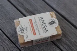 En tvål med ekologiska och naturliga ämnen som bevarar hudens naturliga fukt och spänst.